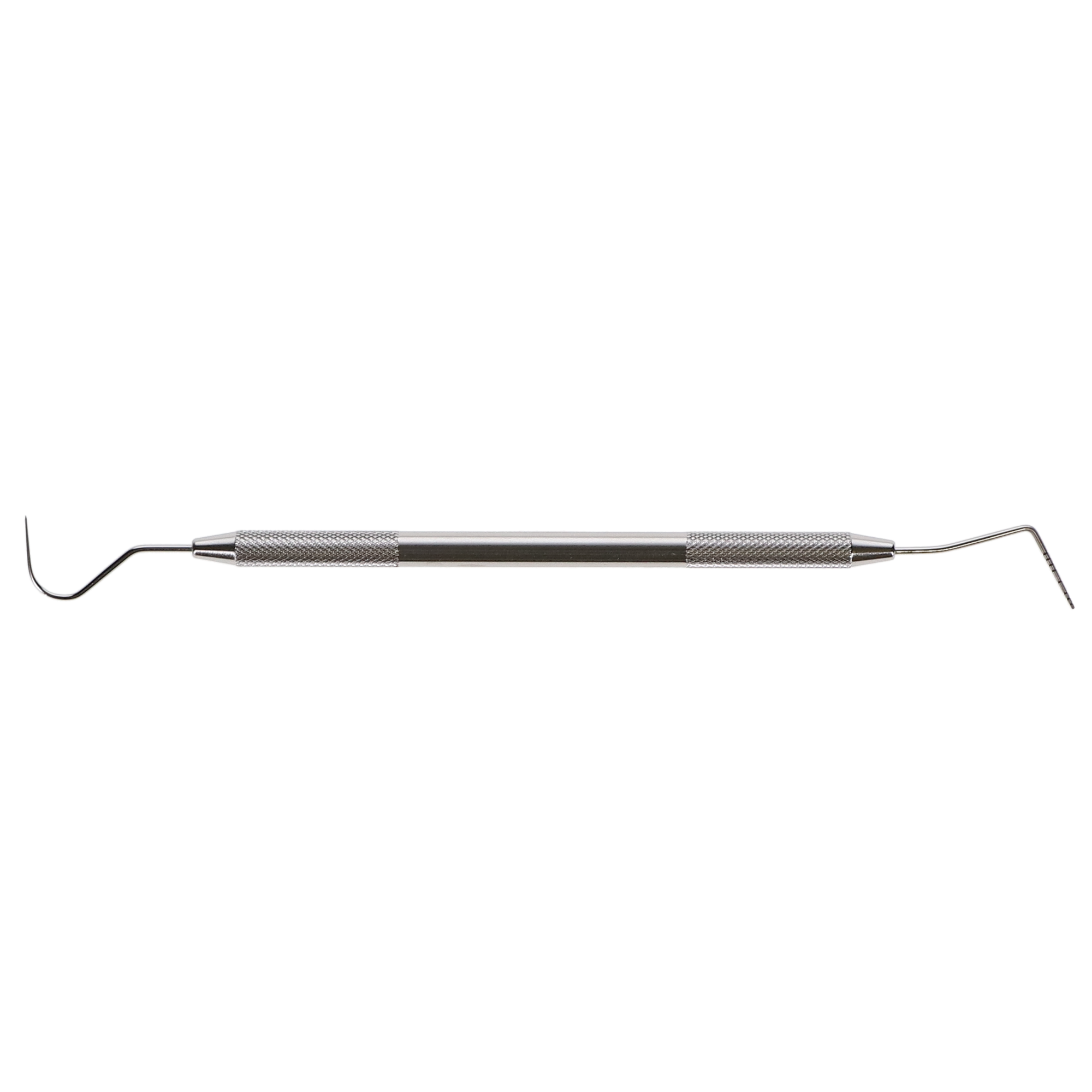 Clear-View Probe is a surgical-grade, stainless-steel probe made from stainless steel for accessing periodontal pocket depths, anatomy configurations, attachment levels, and bleeding in the gums. This probe is not heavy and has a textured handle for enhanced grip.