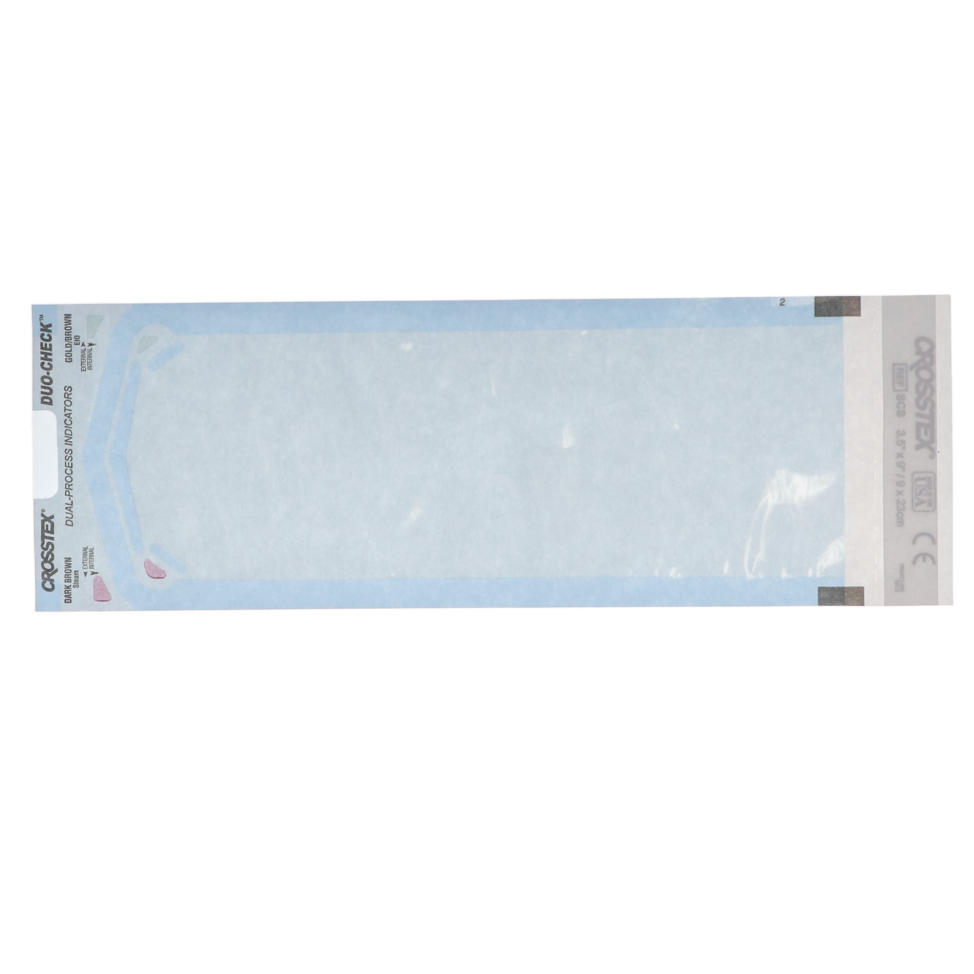 Duo-Check Pouches feature a wide self-adhesive strip design, a thumb notch that allows the pouches to be easily opened, fold perforations for ease of handling, and arrows for the process indicators. Available in various sizes.