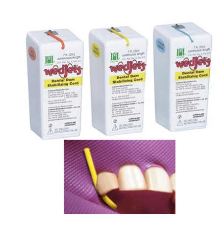 Hygenic Wedjets Stabilizing Cord is a rubber dam cord that is a great option for using conventional clamps in keeping the dam in place when using clamps to provide tight contact. Hygenic Wedjets Stabilizing Cord measures 7 feet (2.