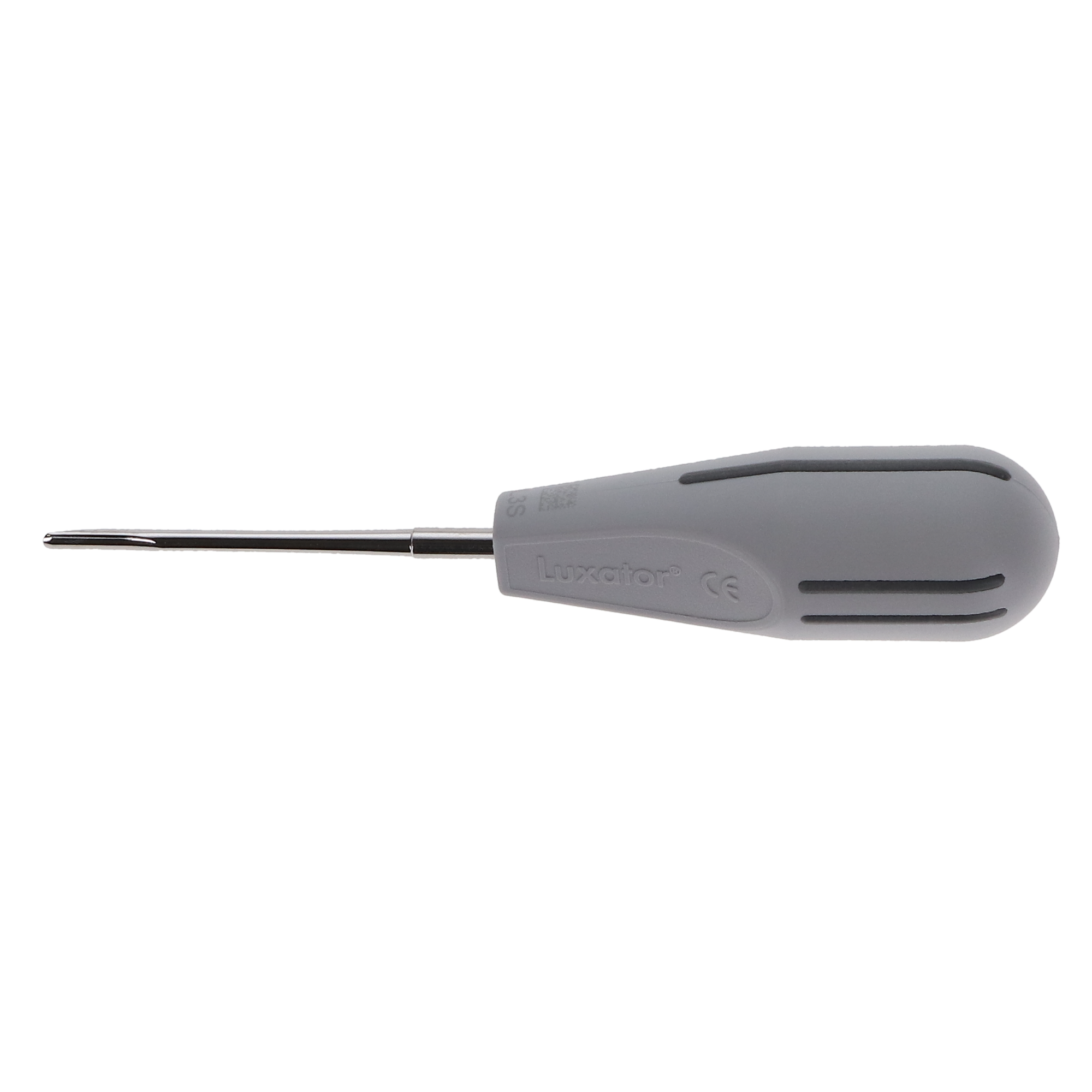 Straight 3.2 mm Luxator Forte elevator instrument used by cutting and rocking instead of the traditional elevating methods of lifting and prying. Forte instruments have stronger design than the standard luxator and may be used for elevating.
